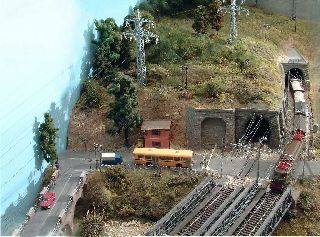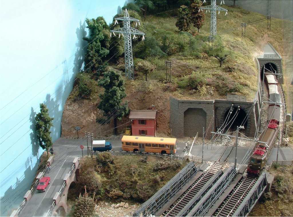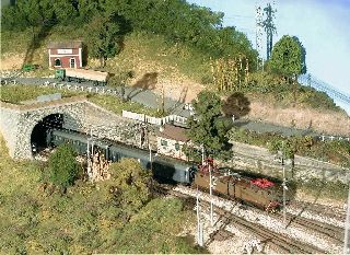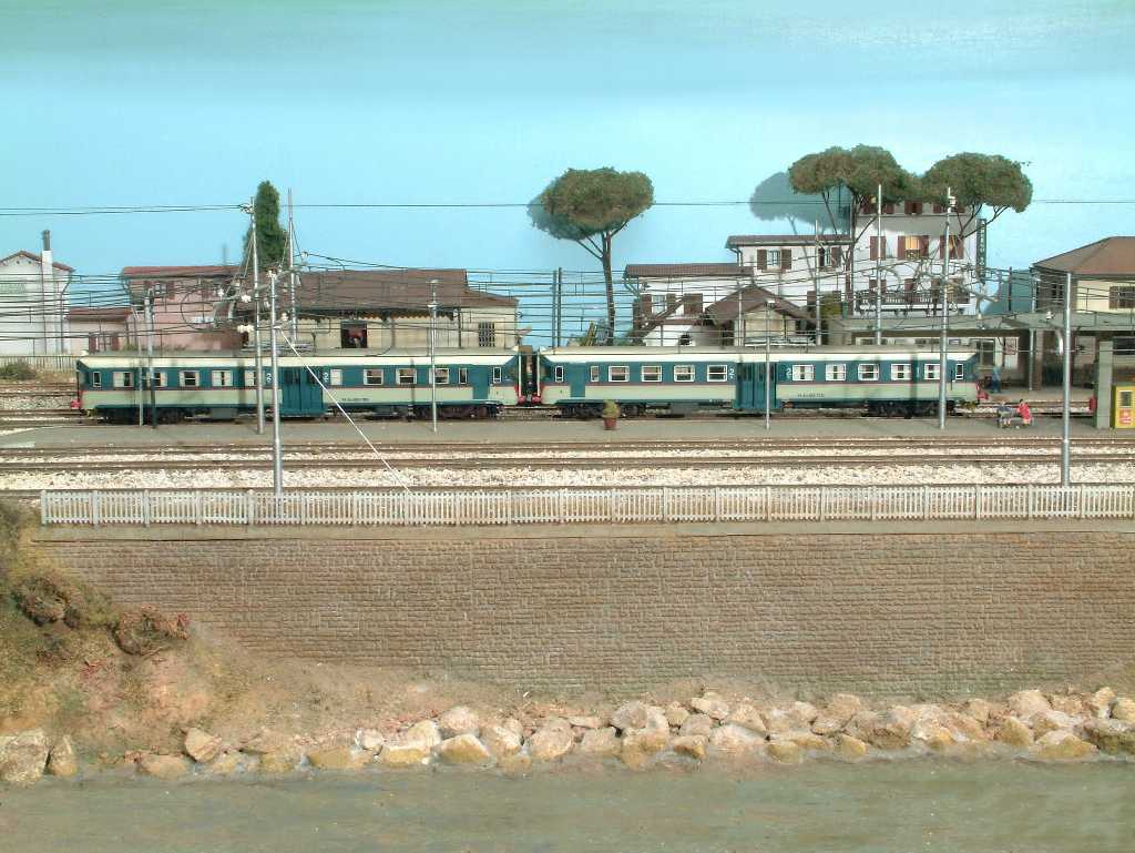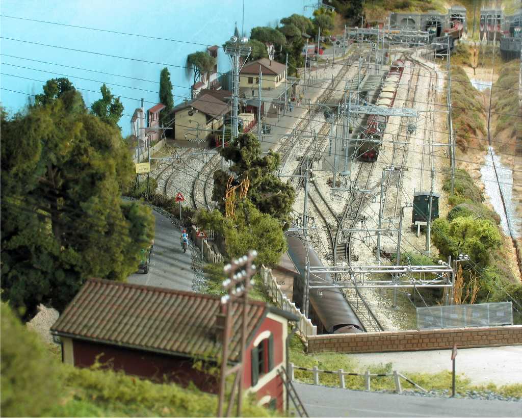 Il plastico riproduce una piccola stazione costiera fra due gallerie, che